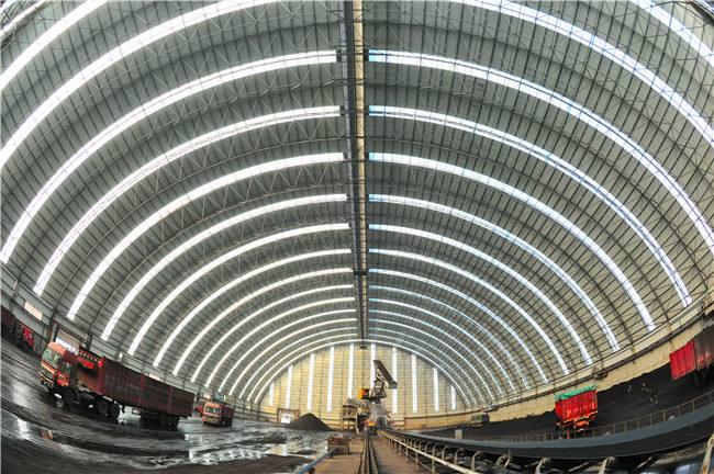 堆场料场封闭式主体结构为新型的钢山南网架结构,维修结构为山南钢结构山南不锈钢板和纤维增强塑料灯具,其外形以山南网架式和平板为主,连接柱山南施工自由,设置喷雾自动喷水系统,从而可以实现棚内所有物料的覆盖,减少物料在运输过程中的损耗,起到防尘的作用,减少工厂关闭后的二氧化硫排放量,50mg/m3颗粒排放量小于10mg/m3,非常适合低能耗。低闭库自动感应反应对库存轮胎进行清洁,确保轮胎不受道路污染;封闭的储存区可从源头控制粉尘污染,控制无序排放。